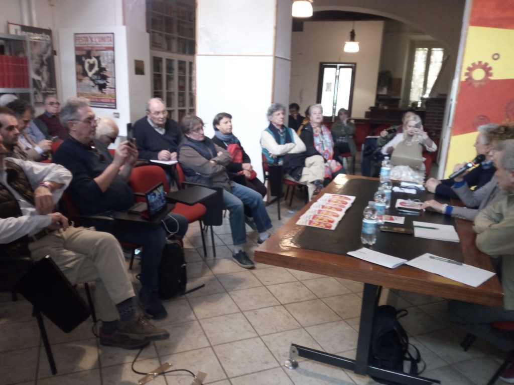 L’incontro prosegue con un vivo dibattito col pubblico, dal quale nasce la richiesta dell’unità dei comunisti e delle forze antimperialiste per la lotta contro la guerra e contro la Nato, e si conclude con un momento conviviale offerto dalle compagne russe presenti: ottima vodka, pane e salame. Il convegno ha certamente riportato al centro la necessità di divulgare finalmente la verità su quanto la Russia stia facendo in Ucraina e sul fatto che occorra rinsaldare i rapporti storici di amicizia tra italiani e russi.