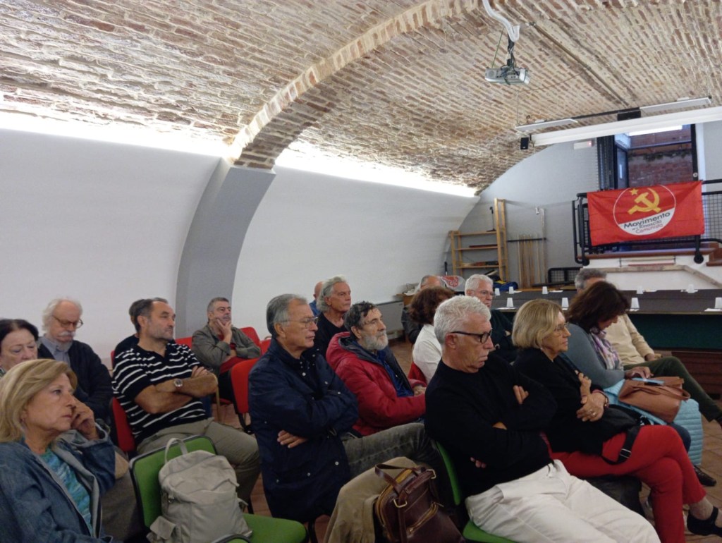 Mentre scriviamo queste note (sabato 14 settembre, di mattina presto) i compagni e le compagne del MpRC di Ancona sono già al lavoro per l’organizzazione della seconda giornata della Festa. Si rimette a nuovo la sede, dopo “le occupazioni” della prima giornata, si inizia a cucinare (oggi orecchiette con cime di rapa e pollo ai peperoni, e mentre scriviamo gli odori già ci “invitano”), si prepara la piazza e si issano le bandiere rosse con falce e martello del MpRC tra gli alberi (sperando non piova anche oggi), mentre ci si organizza per andare a prendere, con le macchine, gli oratori che con i treni vengono da lontano. I due dibattiti di oggi, sabato 14 settembre: alle ore 18: “Non c’è movimento rivoluzionario senza teoria rivoluzionaria”, che è una presentazione del libro del MpRC Primi appunti politico-teorici, 27 capitoli sui grandi temi del movimento comunista e rivoluzionario. La compagna Laura Baldelli, della redazione di «Futura Società», condurrà il dibattito, che vedrà gli interventi del professor Francesco Galofaro, docente di semiotica all’università di Milano e coordinatore del Gruppo di Lavoro sulle questioni della ricerca marxista e della rivoluzione nel XXI secolo del Centro Studi nazionale “Domenico Losurdo”, di Vladimiro Merlin, della segreteria nazionale del MpRC, e di Fulvio Bellini, esperto di questioni geopolitiche e studioso di storia del movimento operaio e comunista. Tutti e tre – Galofaro, Merlin e Bellini – coautori del libro del MpRC – coordinato da Fosco Giannini, Primi appunti politico-teorici.