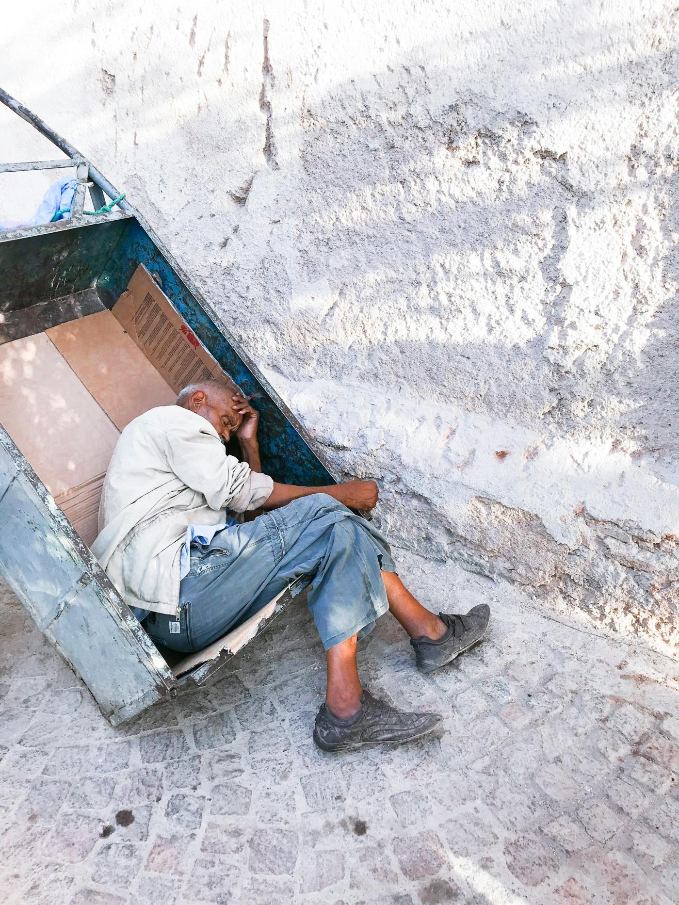 Immagine: Foto di julie aagaard: https://www.pexels.com/it-it/foto/un-uomo-anziano-che-dorme-su-un-carrello-di-metallo-in-una-strada-vicino-a-un-muro-2734627/