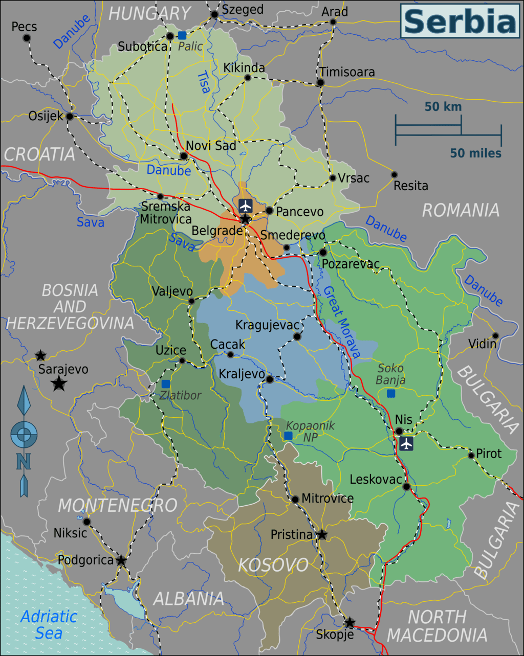 Immagine: User:(WT-shared) Burmesedays, UN Map of Serbia, OpenStreetMap, Wikipedia user PANONIAN, CC BY-SA 3.0 <https://creativecommons.org/licenses/by-sa/3.0>, via Wikimedia Commons