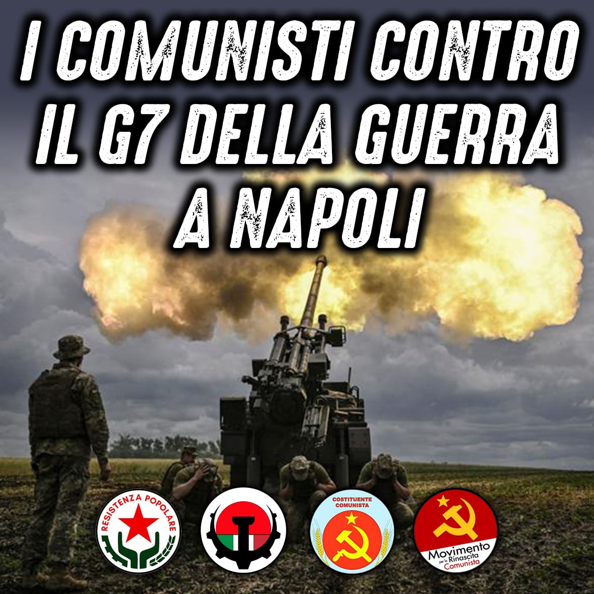 Contro il G7 della Difesa a Napoli del 18, 19 e 20 ottobre, Costituente Comunista, il Movimento per la Rinascita Comunista, Patria Socialista, Resistenza Popolare, insieme con tutte le realtà impegnate nella lotta contro la guerra imperialista, contro l’imperialismo e per la pace, aderiscono congiuntamente alla piattaforma di movimento e partecipano alla mobilitazione che vedrà, tra l’altro, il corteo nel centro di Napoli il prossimo sabato 19 ottobre.