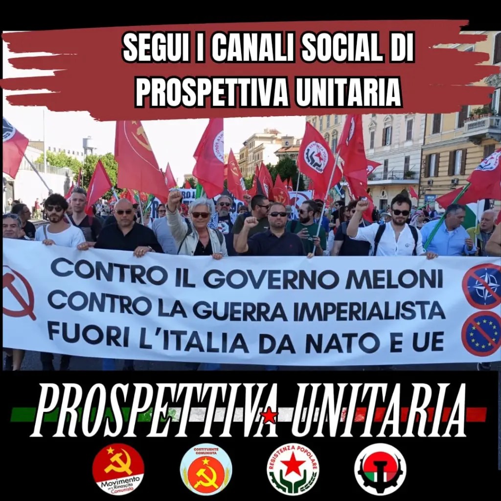 Il documento costitutivo del progetto politico Prospettiva Unitaria, sottoscritto da Costituente Comunista, Movimento per la Rinascita Comunista, Patria Socialista e Resistenza Popolare, con il quale si avvia un nuovo percorso aperto alle compagne e ai compagni e alle organizzazioni che intendano aderire, collaborare, confrontarsi e partecipare alla costruzione di una nuova grande e unitaria soggettività comunista. Di seguito i riferimenti da contattare.