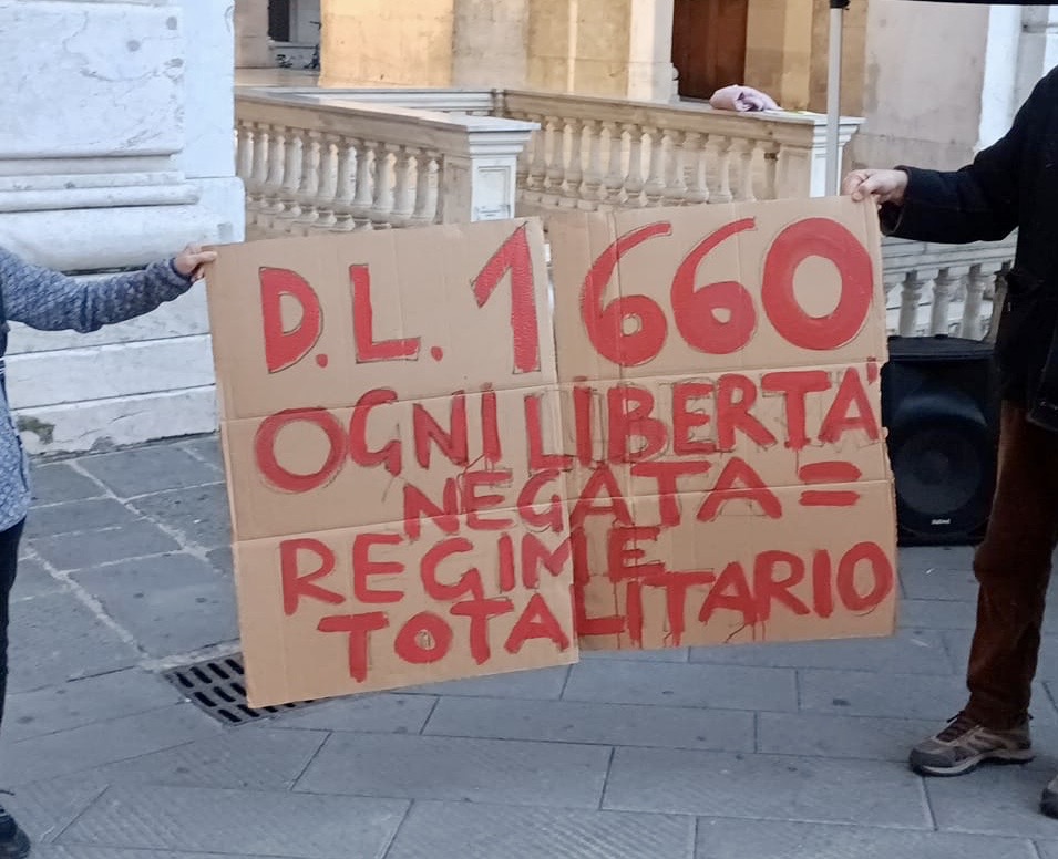 Il ddl 1660 è una legge capitalista: destra e sinistra, in questa congiuntura storica, sono maschere di facciata del Pentagono, organiche alla dottrina della “guerra eterna”. La sinistra neoliberale, rea d’aver facilitato l’avvento del fascismo globale, è guerrafondaia né più e né meno di Trump e Meloni. Il capitale non ha bandiere, ma soltanto interessi: il transumanista Elon Musk, finanziatore della campagna elettorale di Joe Biden, s’è riciclato in un trumpiano convinto.
