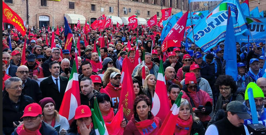 Le condizioni affinché lo sciopero fosse partecipato e sentito, vi erano tutte. Ed effettivamente la partecipazione è stata consistente: i pullman sono arrivati da tutta la regione e oltre 4.000 persone hanno affollato le strade di Fabriano, andando a riempire la bella piazza centrale, colorata prevalentemente dalle bandiere rosse della Cgil e blu della Uil. Eppure, gli animi, non sono infuocati, la piazza non partecipa con entusiasmo agli slogan lanciati dal palco da istituzioni e rappresentanti sindacali, a tratti si percepisce un misto tra indifferenza e rassegnazione. Riflettendo sulle condizioni della classe lavoratrice italiana, obiettivamente, non ci sono ragioni per essere ottimisti, dal momento che le politiche neoliberali degli ultimi quarant’anni, promosse dalle classi dirigenti di tutti i colori, altro non hanno fatto che comprimere i diritti sul lavoro e fare pesanti tagli a sanità, istruzione e pensioni, peggiorando nel complesso le condizioni di vita di proletari e sottoproletari. I salari, l’aspetto più pratico della questione, non crescono, anzi negli ultimi trent’anni hanno subito una contrazione in termini reali e con l’impennata dell’inflazione registrata, la perdita di potere d’acquisto della classe lavoratrice è stata notevole. Ma il vero dramma è quello dei 195 operai della Giano s.r.l., ormai prossimi al licenziamento, vista l’annunciata chiusura, da parte del Gruppo Fedrigoni, dello stabilimento che da secoli produce la carta, una vera eccellenza italiana, un vero made Italy; ugualmente preoccupanti sono i 1935 esuberi dichiarati dalla multinazionale Beko, che lasciano presagire una sanguinosa, per le famiglie del territorio, dismissione industriale dell’ex Indesit dei Merloni.