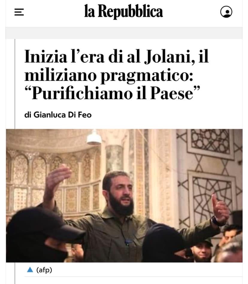 La legittimazione e la ripulitura d’immagine di terroristi jihadisti in Siria, alcuni di loro come al-Joulani con taglie milionarie pendenti sulla testa, in fondo è la riproposizione di vecchi schemi già collaudati. La dinamica consiste nell’appoggiare politicamente, finanziariamente (e armare) e presentare positivamente, tramite i media subalterni, tali compagini radicali e usarli per scagliarli contro un nemico comune. Oggi si usano per destabilizzare la Siria, ieri accadeva con l’Afghanistan. Pensiamo alla Thatcher che, visitando il Pakistan nell’ottobre del 1981, disse ai mujaheddin afghani in un campo profughi vicino al confine: “I cuori del mondo libero sono con voi”. Ovviamente, ai tempi erano utili a britannici e statunitensi per contrastare la Repubblica democratica Afghana prima e i sovietici dopo. L’«Indipendent», addirittura, in un suo articolo del 1993 titolava “un combattente antisovietico mette il suo esercito sulla strada della pace” riferendosi a Bin Laden.