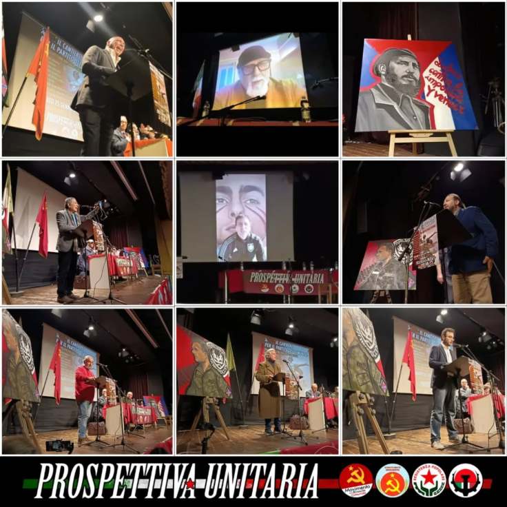Alla presidenza dell’assemblea, composta da composta da Michelangelo Tripodi (Movimento per la Rinascita Comunista), Sarah Santo (Patria Socialista), Giovanni Moriello (Costituente Comunista), Giovanna Colone (Resistenza Popolare), sono poi giunti anche i messaggi di Li Song-Yang del Partito Comunista Cinese e di Derek Luo della Lega della Gioventù Comunista Cinese, oltre che di Alessandro D’Angelo della Federazione Sindacale Unitaria di Hong Kong, dell’ufficio esteri del Partito Comunista Portoghese, del Partito Comunista della Bielorussia, di Samuel Iembo, responsabile relazioni internazionali del Partito Comunista della Svizzera, di Leon Senner, a nome dell’esecutivo nazionale del Bundis Shara Wagenknecht (Bsw), formazione politica tedesca, di Carlos I. Garrido, responsabile scuola quadri del Partito Comunista Americano e direttore del “Midwestern Marx Institute”, e di Immanuel Ness, docente universitario di scienze politiche a New York, marxista e comunista statunitense.