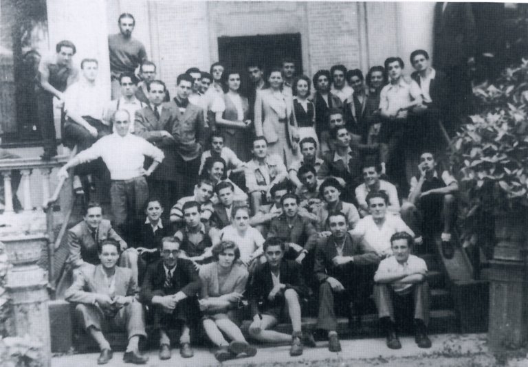 Immagine: nella foto, pubblicata per gentile concessione degli eredi Raimondi, il gruppo dei primi convittori, nell’ottobre 1945, a Milano. Luciano Raimondi è il primo in basso a sinistra.
