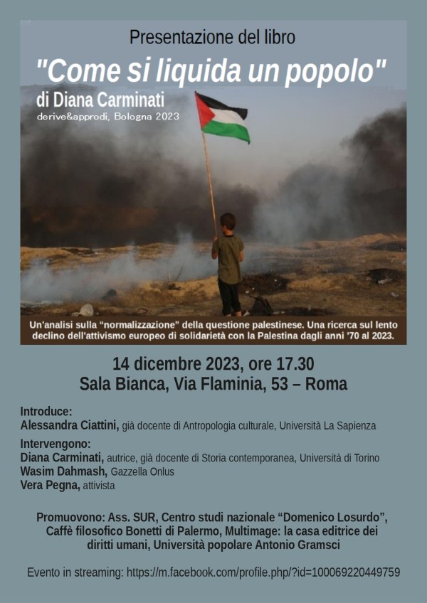 di Redazione Varie associazioni culturali hanno promosso questa iniziativa per denunciare la politica genocida di Israele, di fatto iniziata, dai primi coloni alla fine dell’Ottocento arrivati con il benestare dellegrandi potenze occidentali. Né si può dimenticare che i sionisti si misero d’accordo con i nazisti per consentire l’emigrazione di 61.000 ebrei facoltosi in cambio di... Continua a leggere →